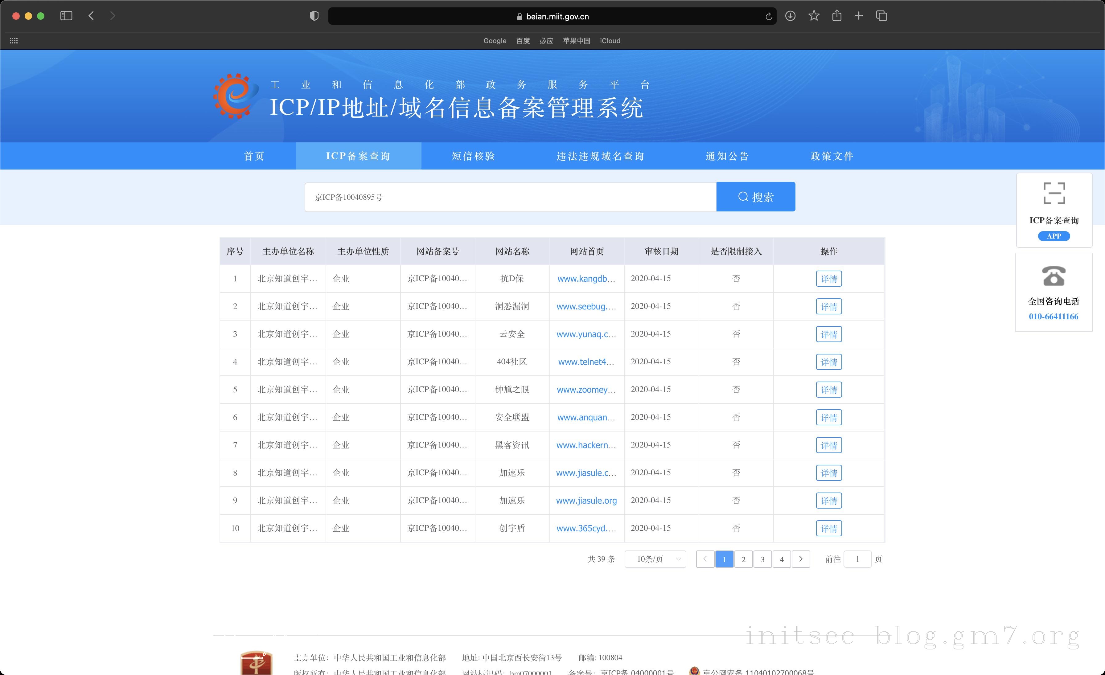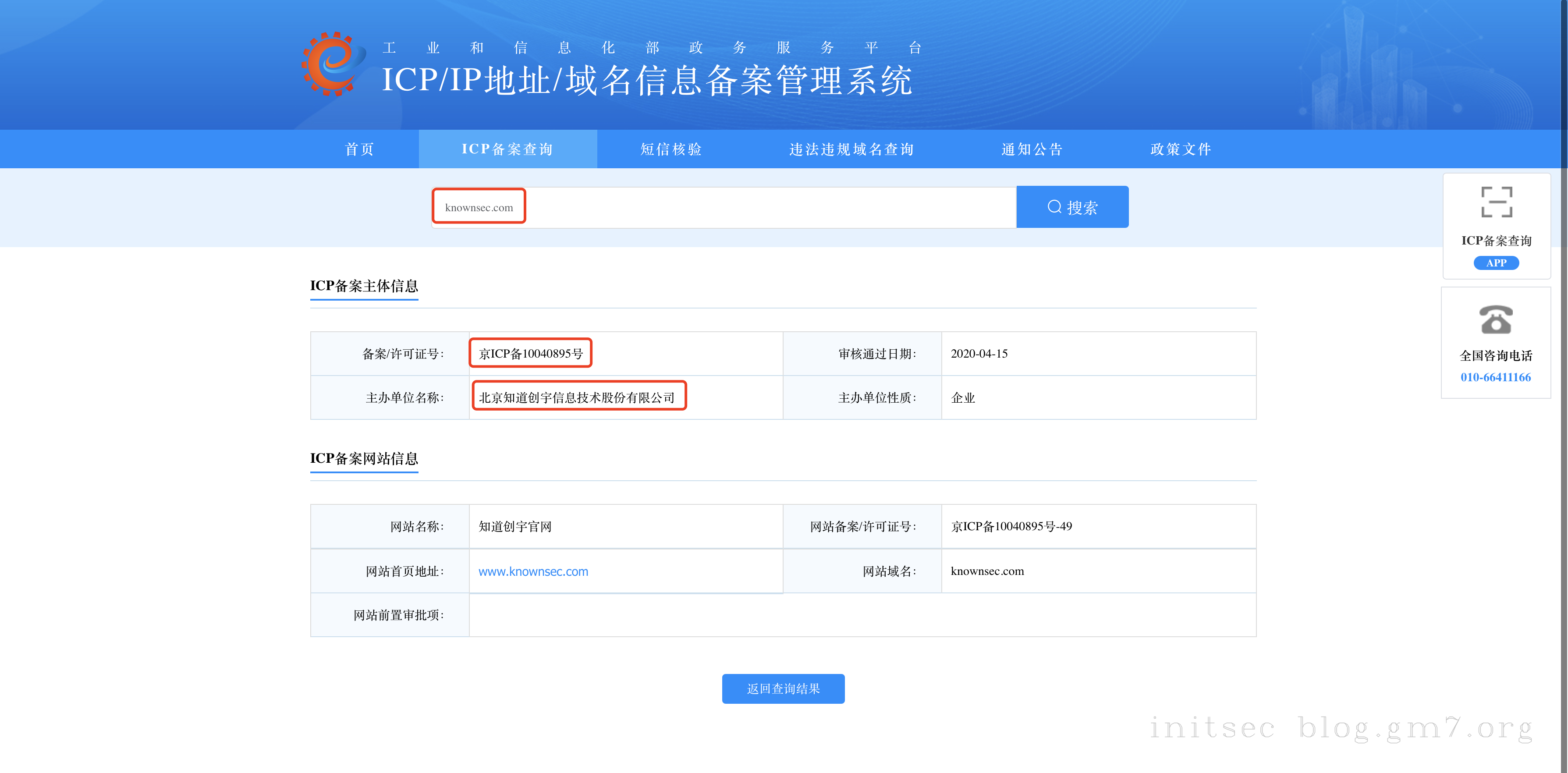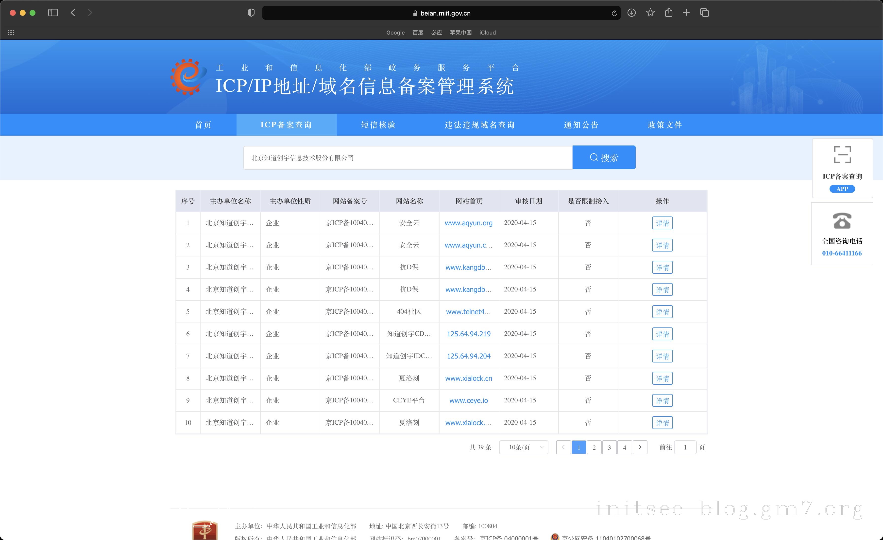 通过查询目标企业的备案信息,可直接获取到目标企业注册了哪些域名,从而增加可渗透的目标范围。