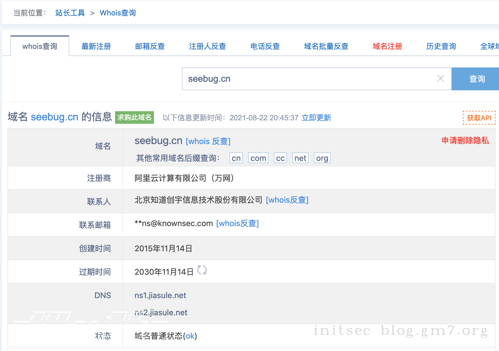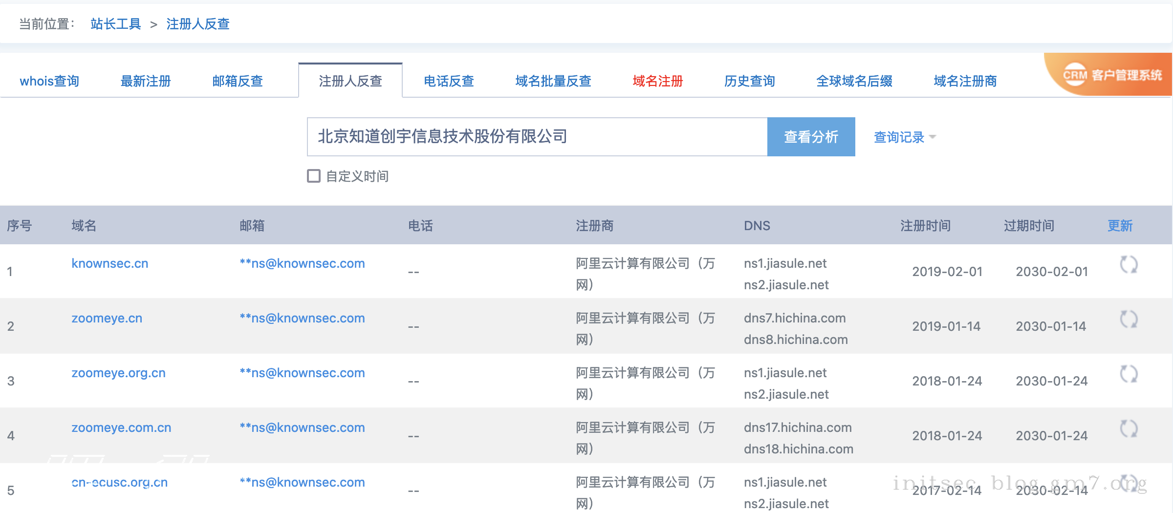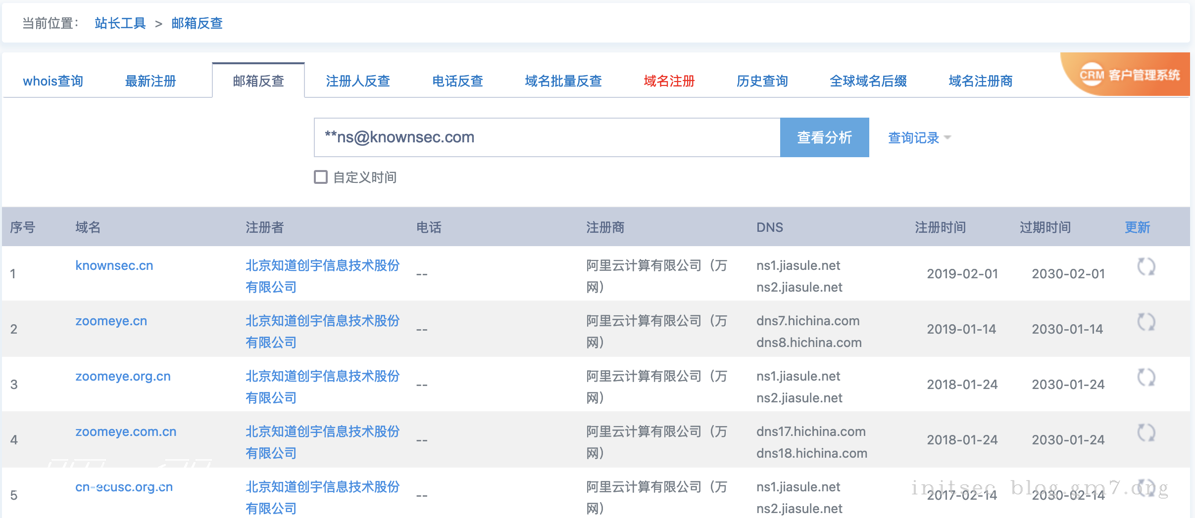 点击联系人后方的 whois反查 进行联系人反查