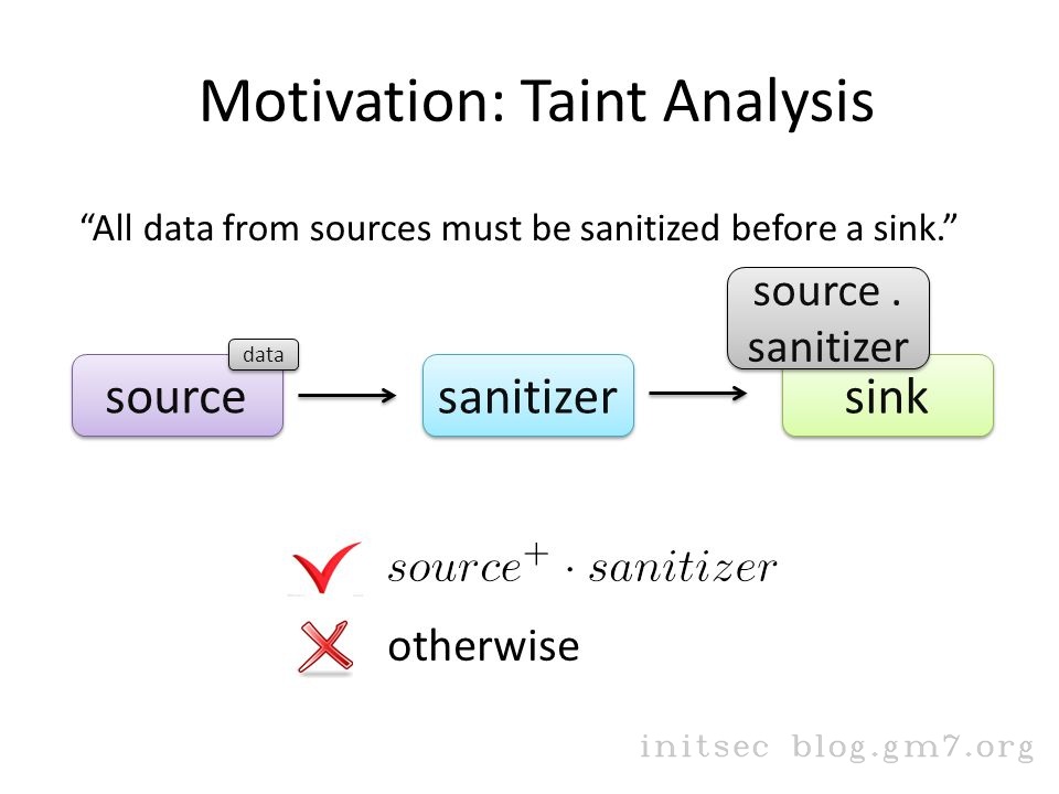 source,sink和sanitizer)。source:是指漏洞污染链条的输入点;比如获取http请求的参数部分,就是非常明显的Source。sink:是指漏洞污染链条的执行点;比如SQL注入漏洞,最终执行SQL语句的函数就是sink(这个函数可能叫query或者exeSql,或者其它)。sanitizer:又叫净化函数,是指在整个的漏洞链条当中,如果存在一个方法阻断了整个传递链,那么这个方法就叫sanitizer。