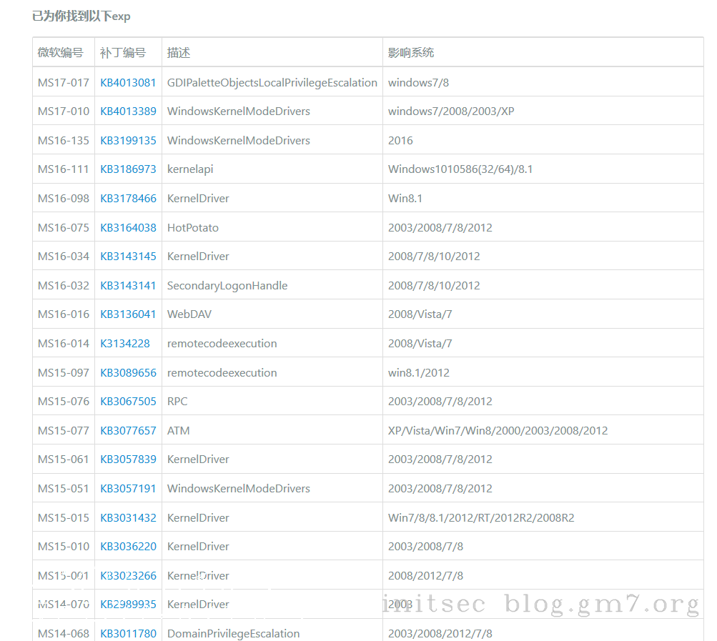 检查方法:CMD 中输入 systeminfo,将结果复制到提权辅助页,查看是否有相应可用的漏洞