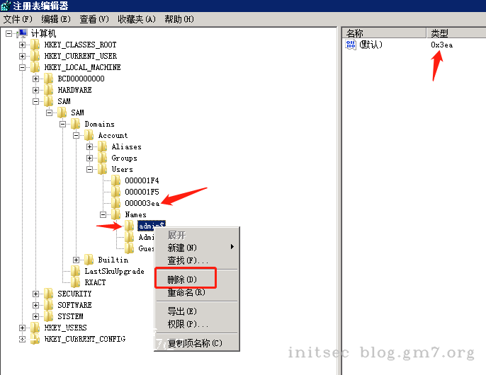 HKEY_LOCAL_MACHINE\SAM\SAM\Domains\Account\Users\下对应帐户的键值即可(两处)