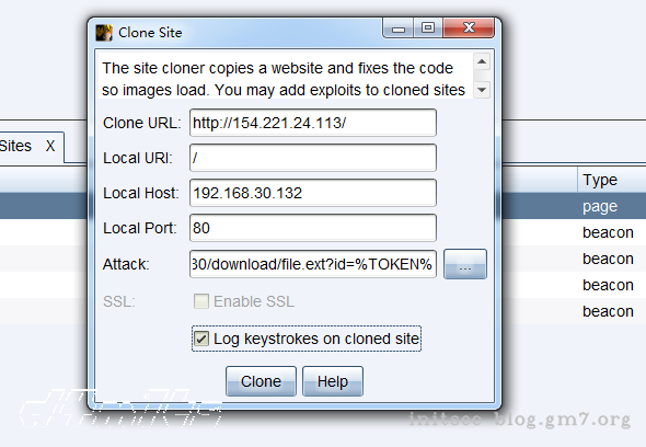 Attacks --> Web Drive-by --> Clone Site克隆网站选项