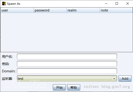 以其他用户权限生成一个会话 需要用户名和密码以及一个监听器可选项域