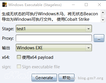 这里选择中转器的监听器生成木马。需要注意的是作为中转器的PC要确认防火墙情况因它会监听一个本地端口并等待连接,如果开启了防火墙会产生一个Windows安全警报