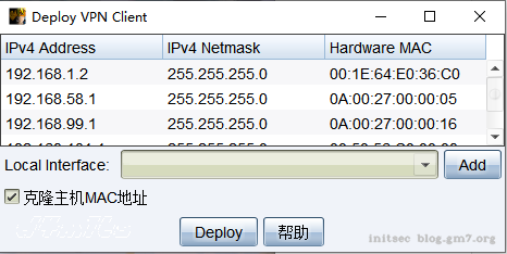 在这里有多种方式的隧道,可以根据自己的需要选择,默认UDP是开销最小的一种方式。添加以后,点击Deploy则可部署成功。可以在VPN接口看到相关信息